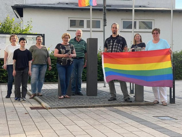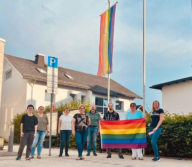 GRÜNE Fraktion freut sich, dass in Neu-Anspach zum Jahrestag des Christopher Street Days die Regenbogenflagge am Rathaus wehte.
