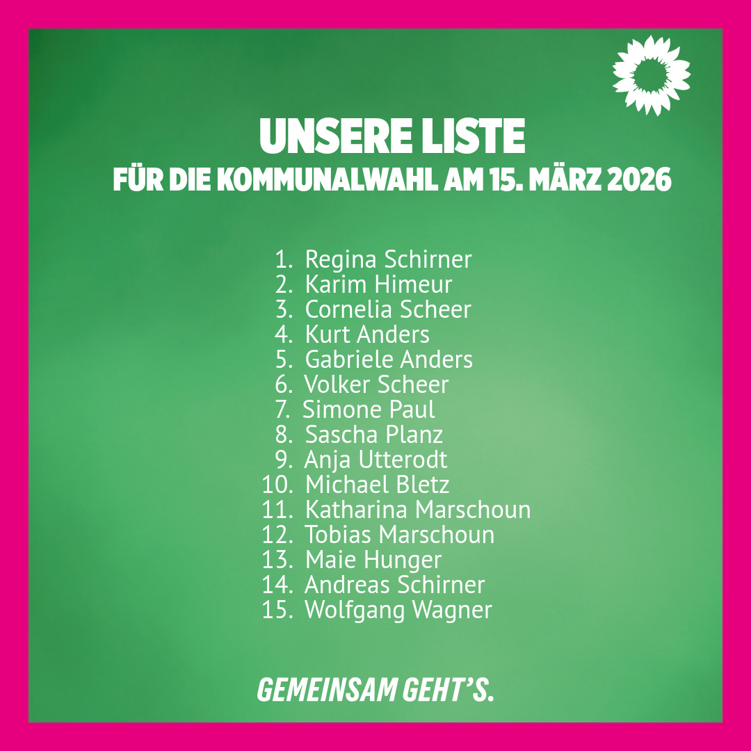 Die Neu-Anspacher GRÜNEN haben ihre Liste zur Kommunalwahl am 15. März 2026 aufgestellt und heute bei der Wahlleiterin eingereicht.